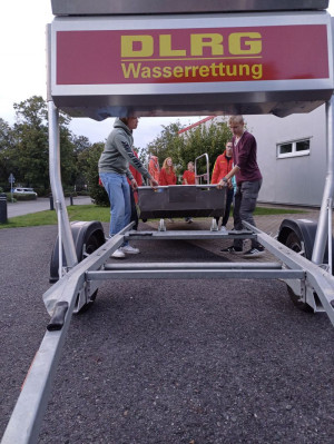 Dabei wurden beide Boote genau erklärt und das Hochwasserboot aus der Halle und vom Trailer geholt und anschließend einsatzklar gemacht.